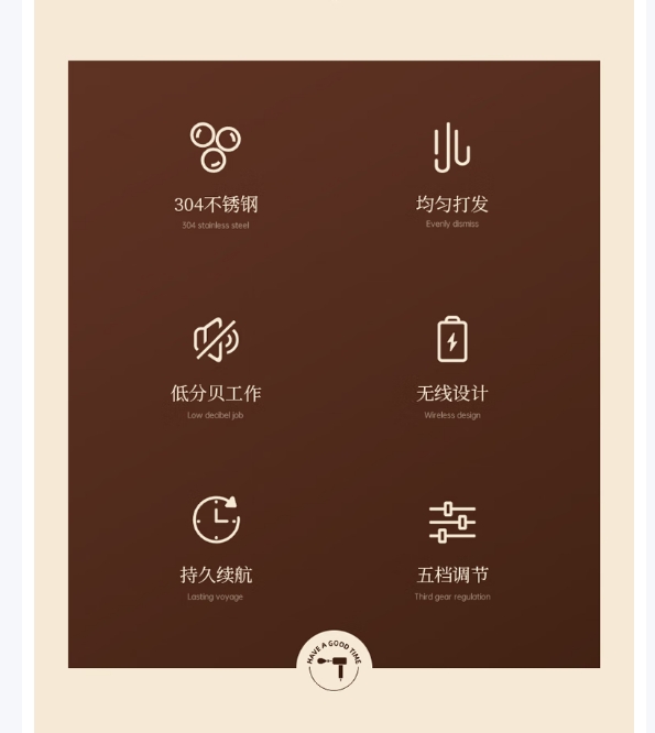 快速打发,烘焙好帮手,304不锈钢,均匀打发,低分贝工作,无线设计,持久续航,五档调节,售后无忧一年内产品质量问题只换不修