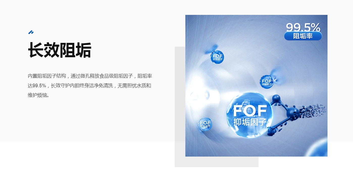 八重深层净滤,抑菌率高达99.99%,食品级阻垢因子,长效阻垢 内胆免洗,杀菌主动提示,一键启动 时刻用好水,8年长久承诺售后放心无忧