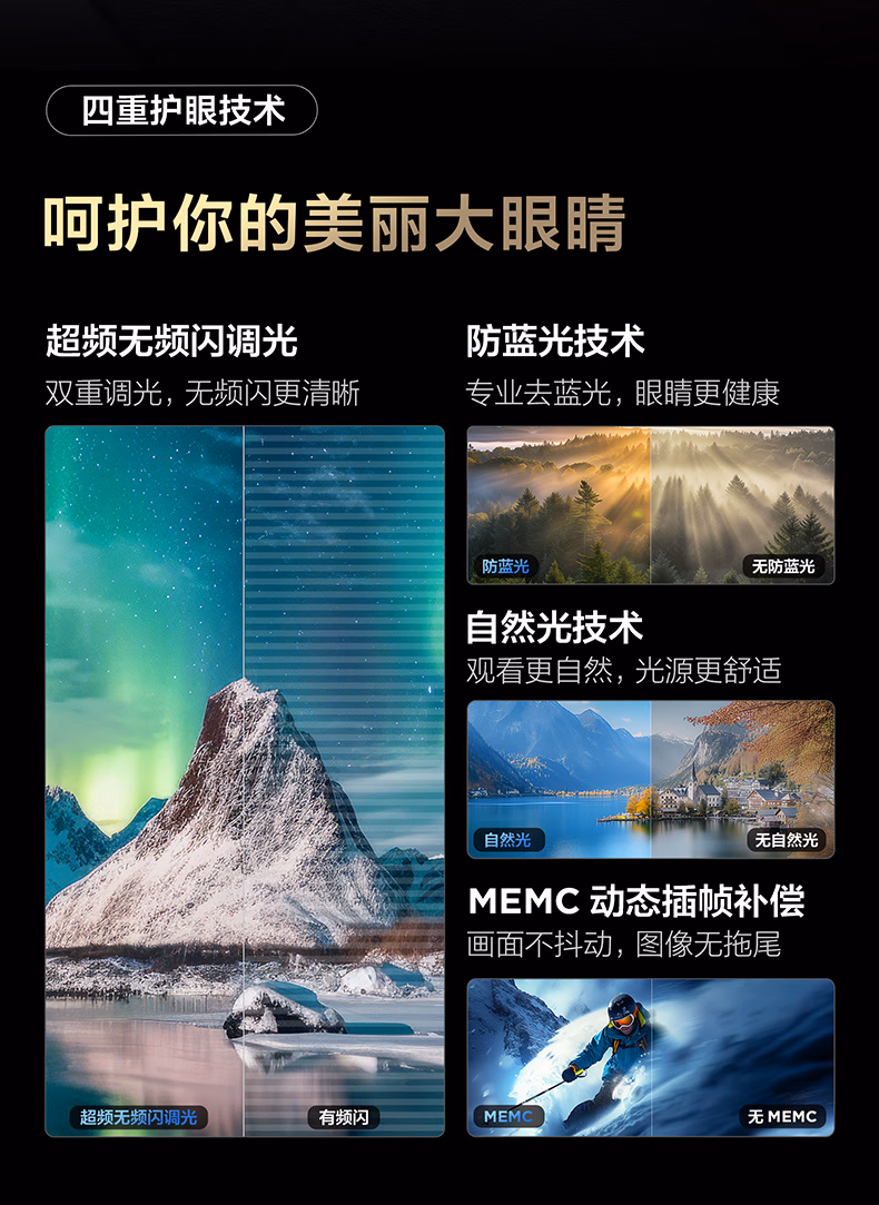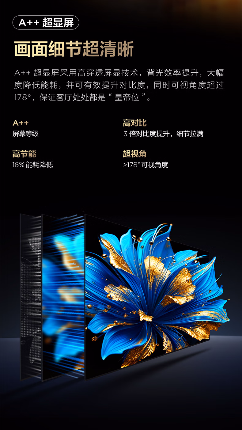 144HZ 高刷 ,高桢丝滑无拖影,A++超显屏,3GB+64GB 大内存,全生态 HDR,130% 原色高色域,Q 画质引擎,安桥 2.1 声道Hi-Fi 级专业音响,全场景 AI,四重护眼技术,WiFi6+蓝牙 5.4