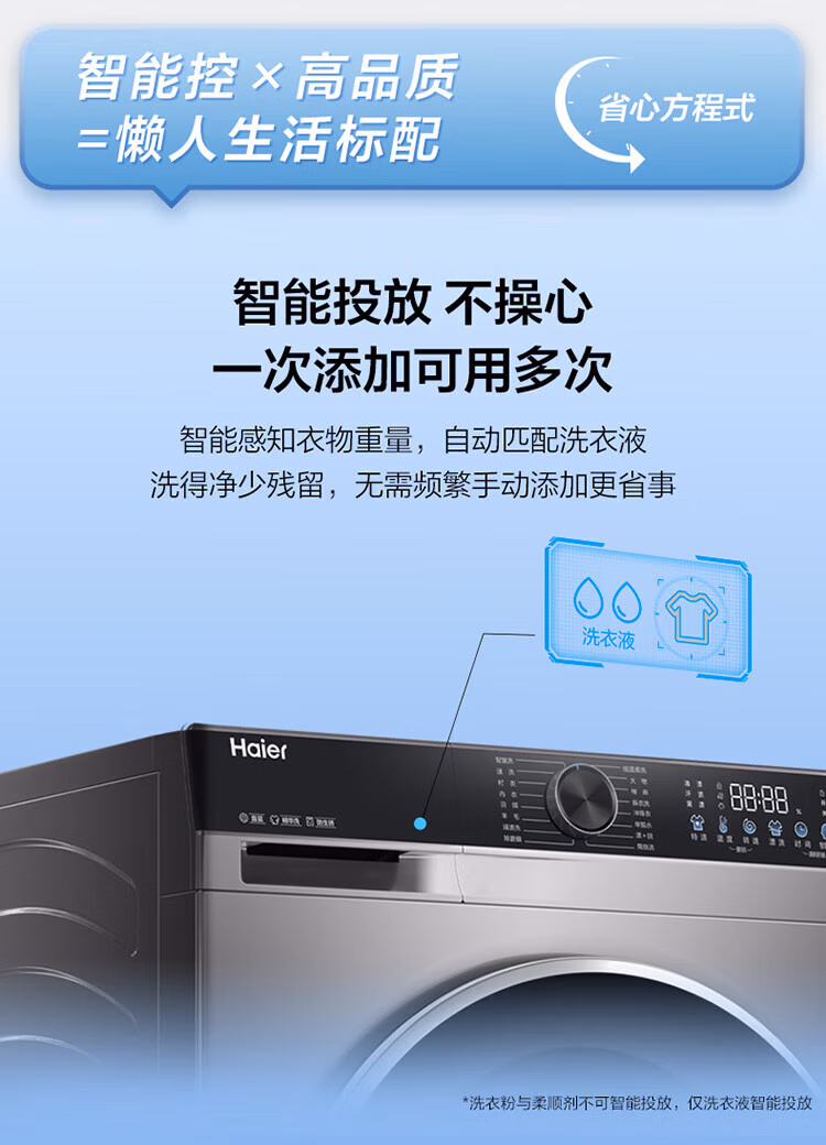 直驱洁净科技,570mm超薄机身完美嵌入,精华洗,更快更净更省,健康除菌螨,双喷淋,冲净泡沫防残留,专衣专洗,智能投放,清新防皱 ,自动抖散, 忘取也没事