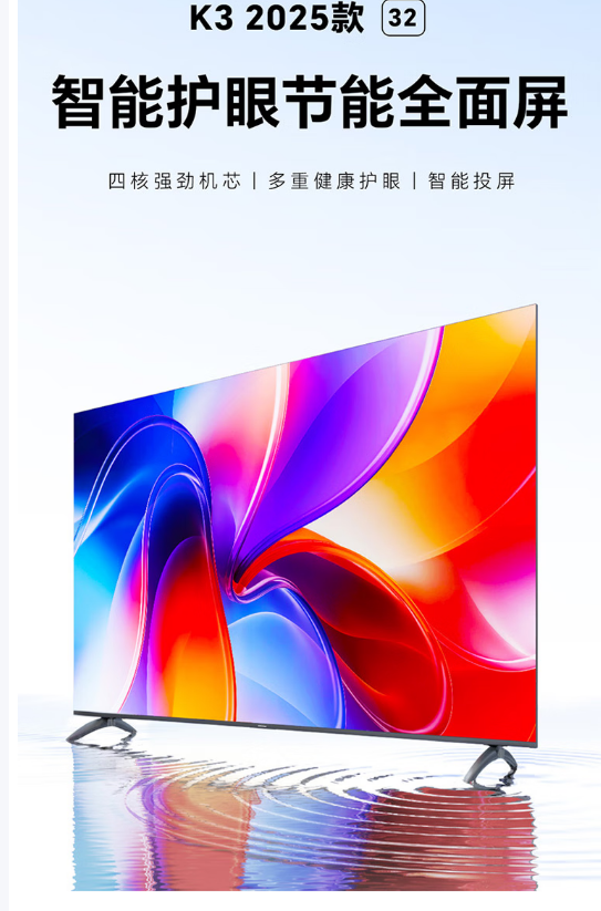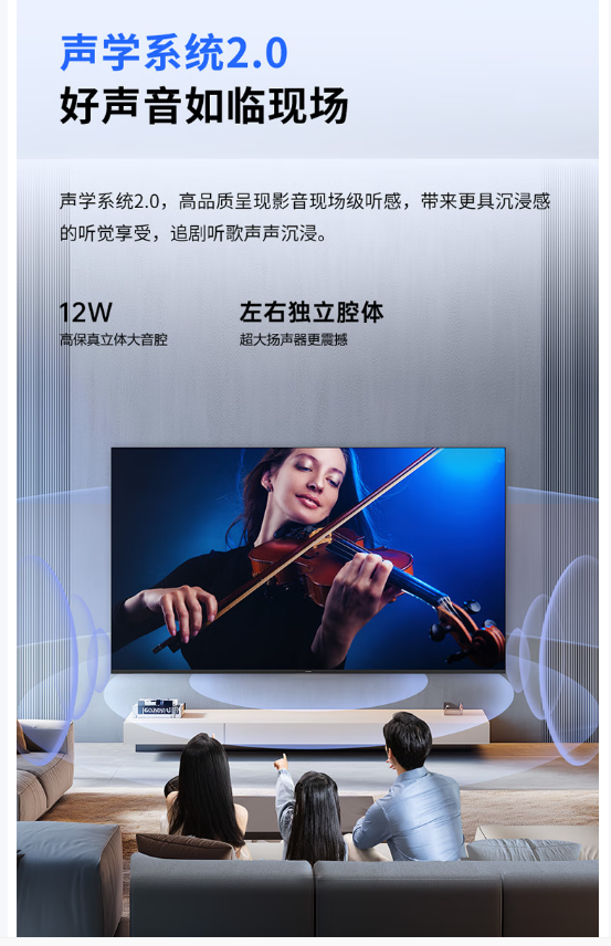 四核强劲机芯,高清画质,声学系统2.0,多重健康护眼,智能投屏