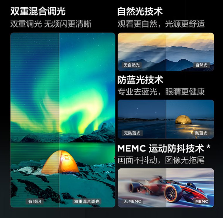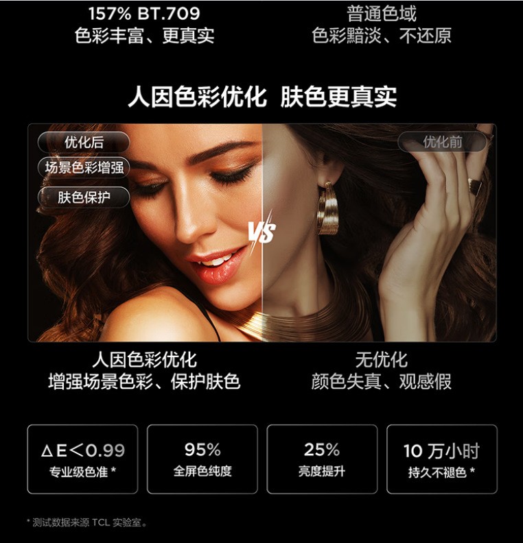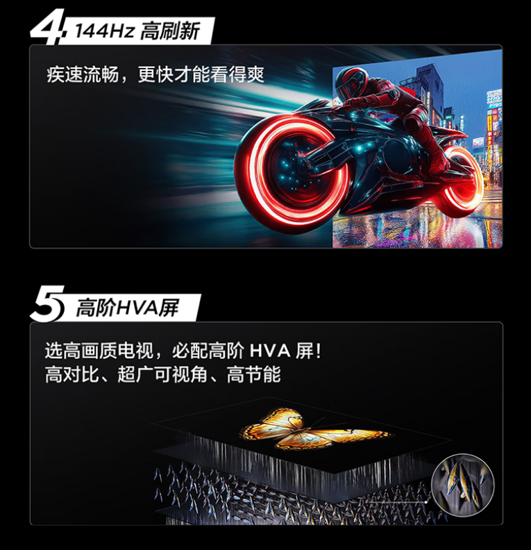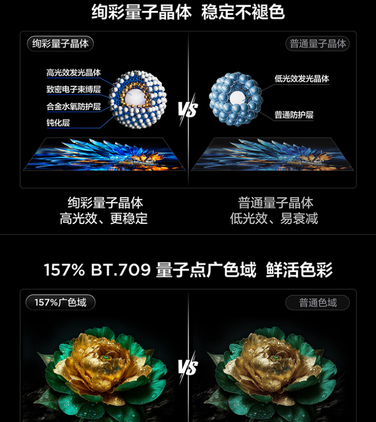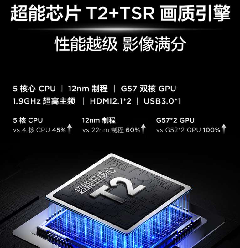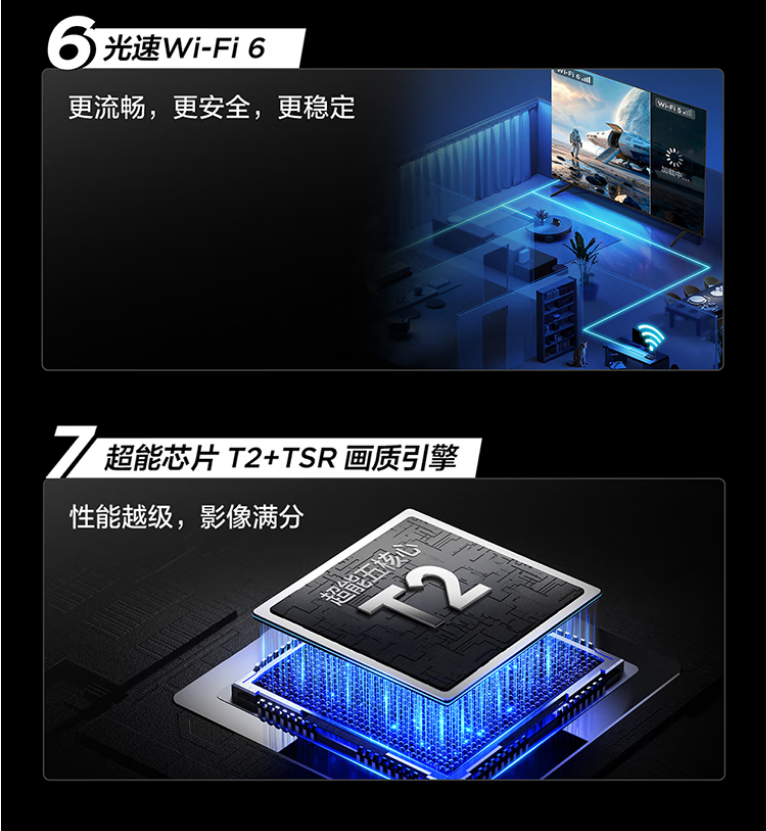 量子点 Pro,157%量子点广色域,安桥2.1Hi-Fi音响,超薄一体化设计,144Hz高刷新,高阶HVA屏,光速Wi-Fi 6,超能芯片T2+TSR画质引擎