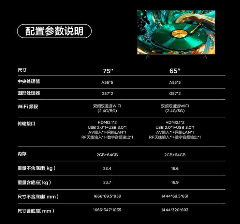 • 屏幕尺寸65英寸